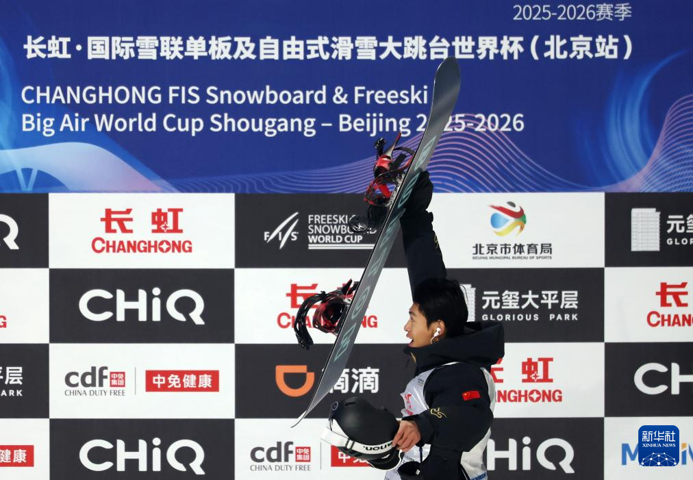 当日,2025-2026赛季国际雪联单板及自由式滑雪大跳台世界杯北京站单板滑雪大跳台男子组资格赛在首钢滑雪大跳台举行。