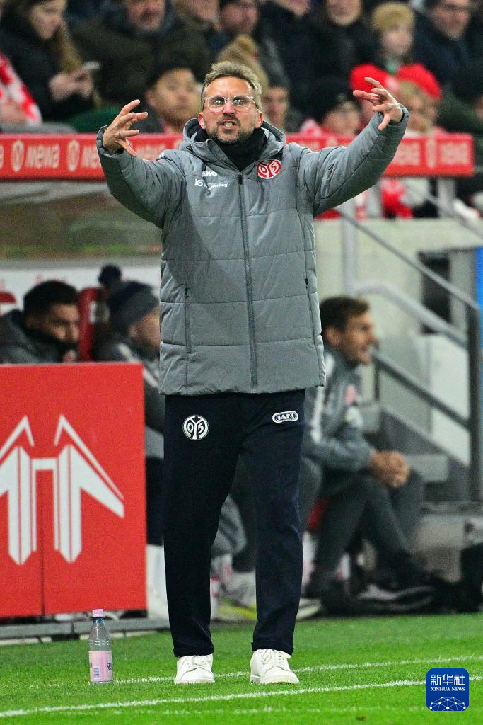 12月5日,美因茨队主教练霍夫曼在场边指挥。