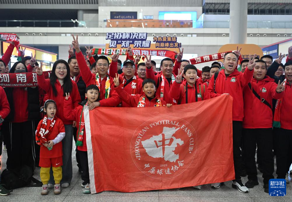 12月6日,河南俱乐部酒祖杜康队球迷在郑州东站拍照留念。