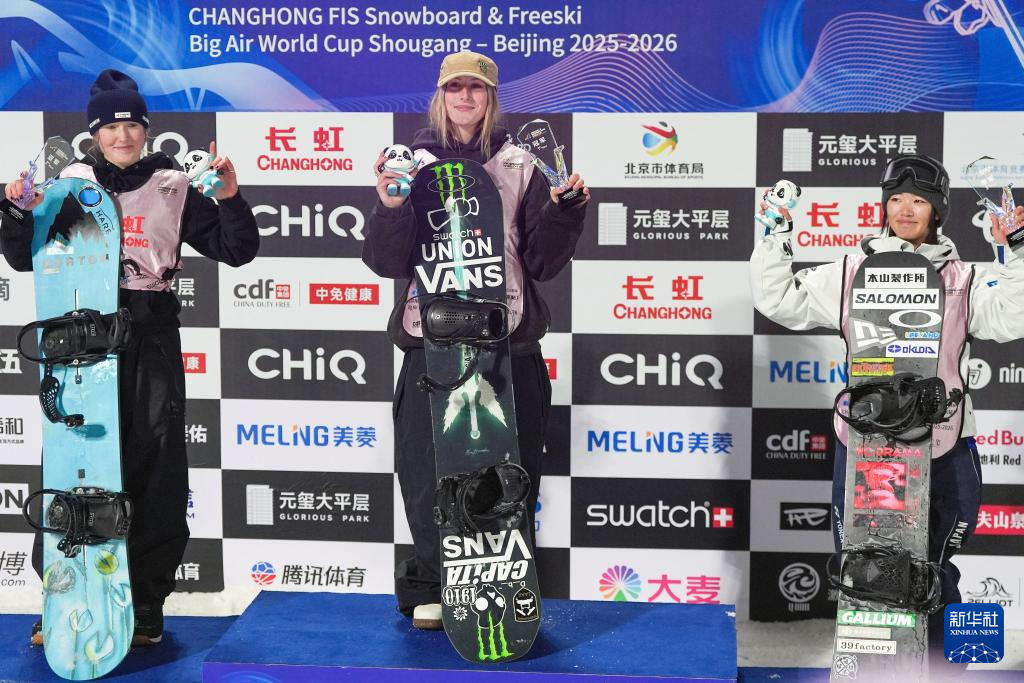 当日,2025-2026赛季国际雪联单板及自由式滑雪大跳台世界杯北京站单板滑雪大跳台女子组决赛在首钢滑雪大跳台举行。