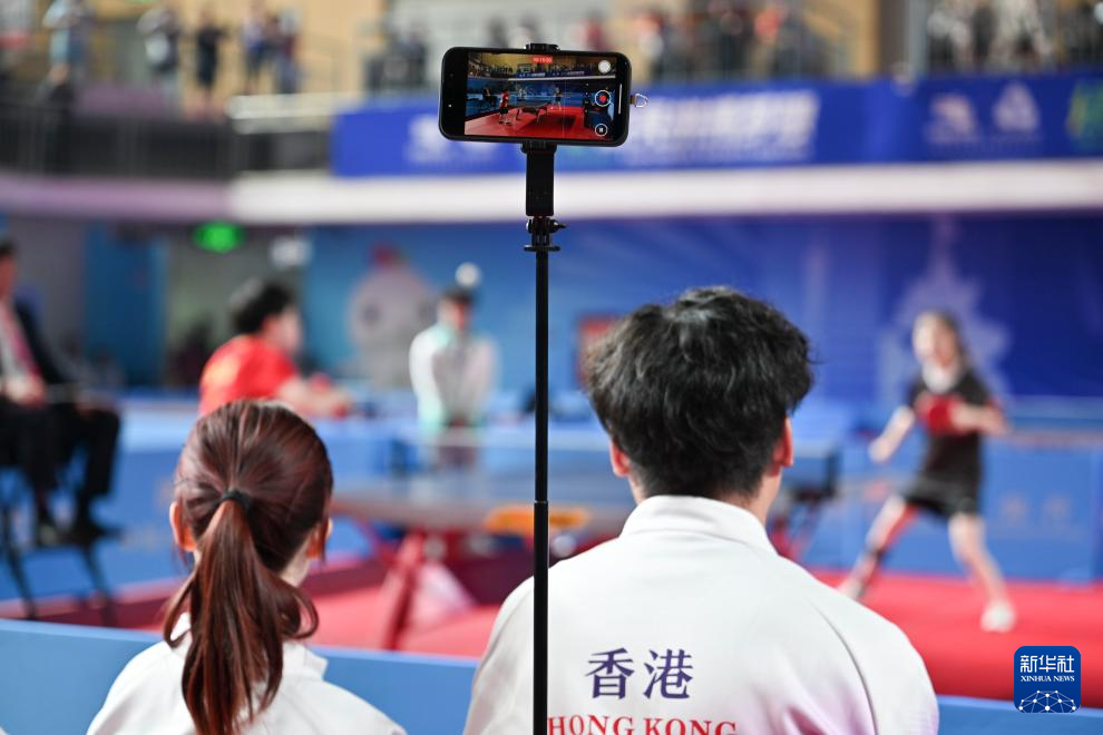 这是12月6日拍摄的香港队用于记录比赛过程的手机。