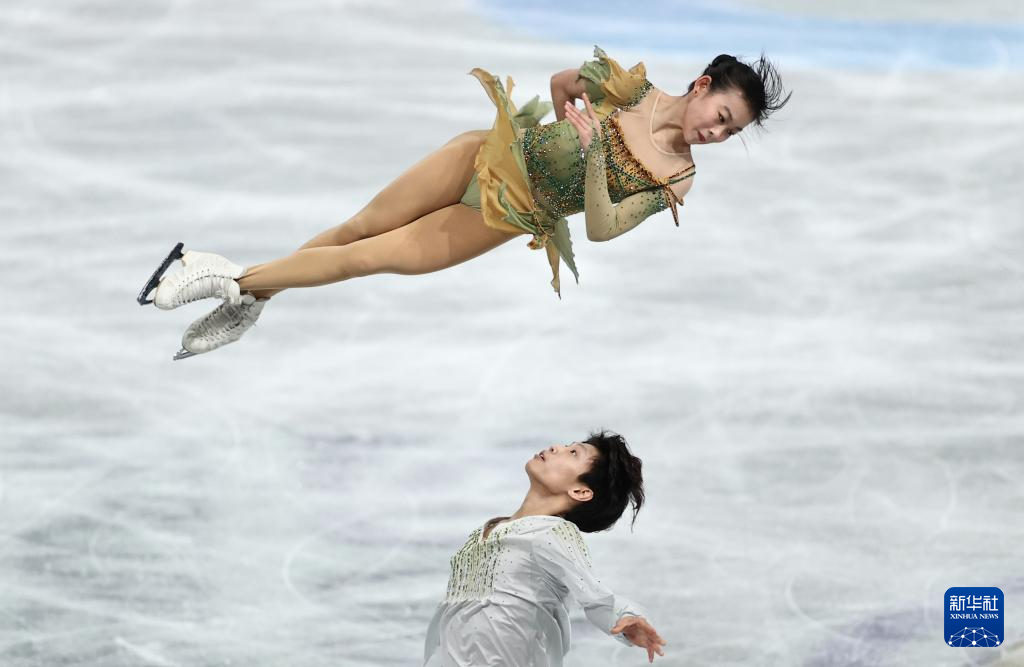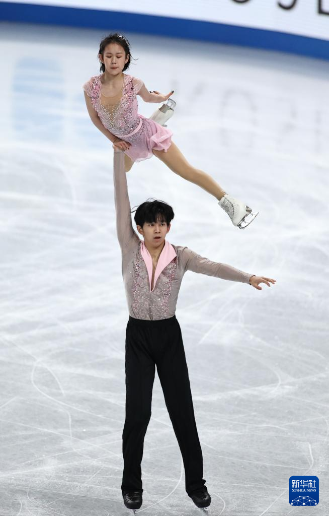 12月6日,中国组合张轩绮(左)/丰闻强在青年组双人滑自由滑比赛中。他们以171.57分的成绩获得银牌。