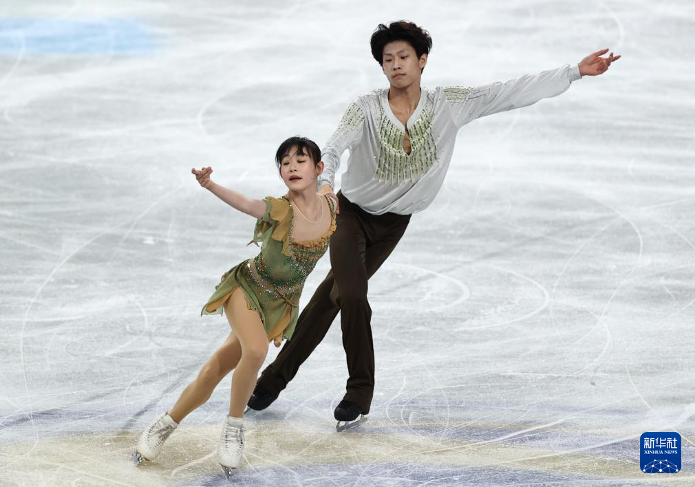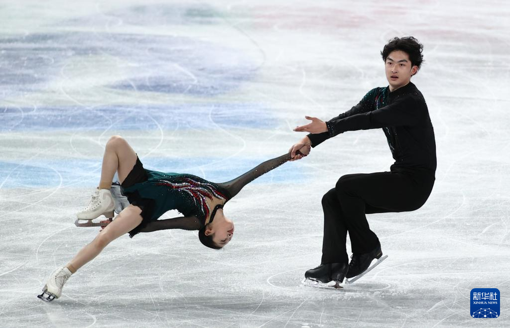 12月6日,中国组合郭蕊(左)/张益文在青年组双人滑自由滑比赛中。他们以177.05分的成绩夺得青年组双人滑金牌。