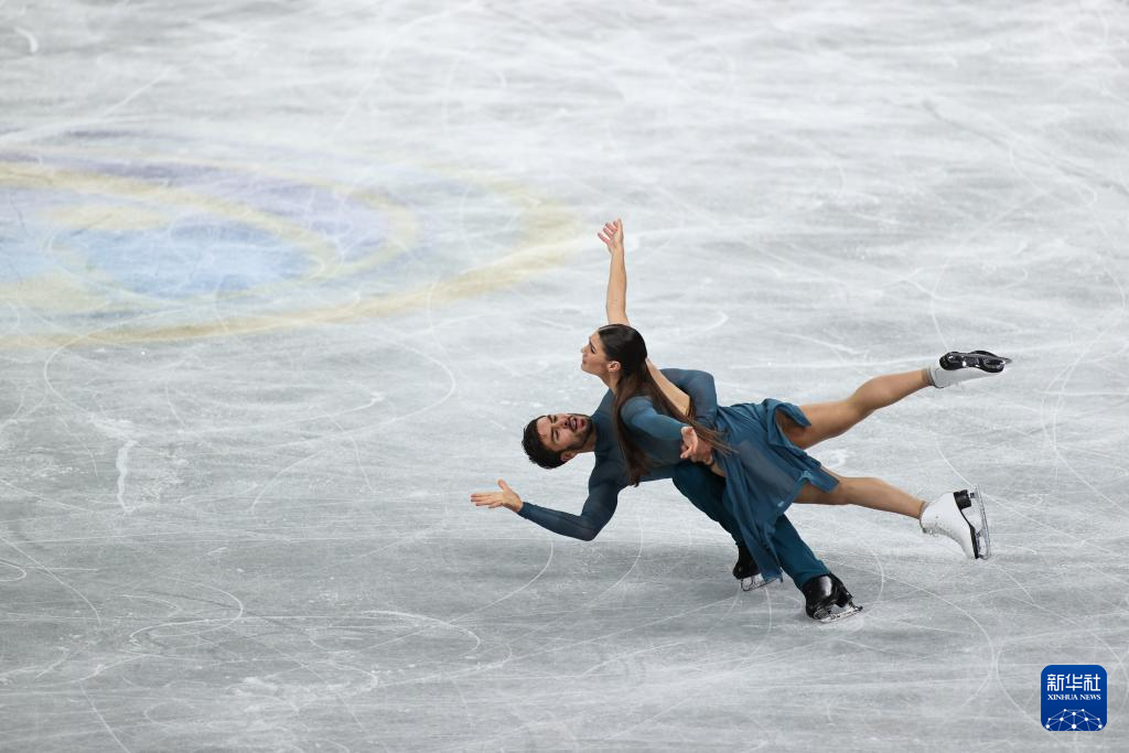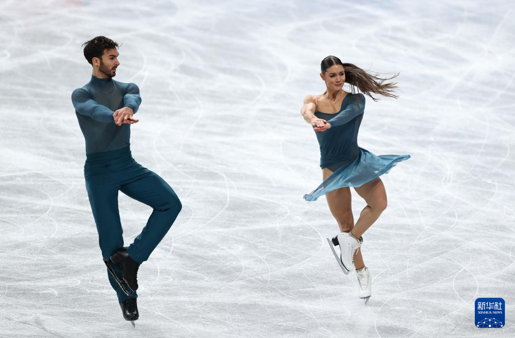 12月6日,法国组合富尼耶·博德里(右)/西泽龙在冰舞自由舞比赛中。他们以214.25分的成绩获得得冰舞银牌。