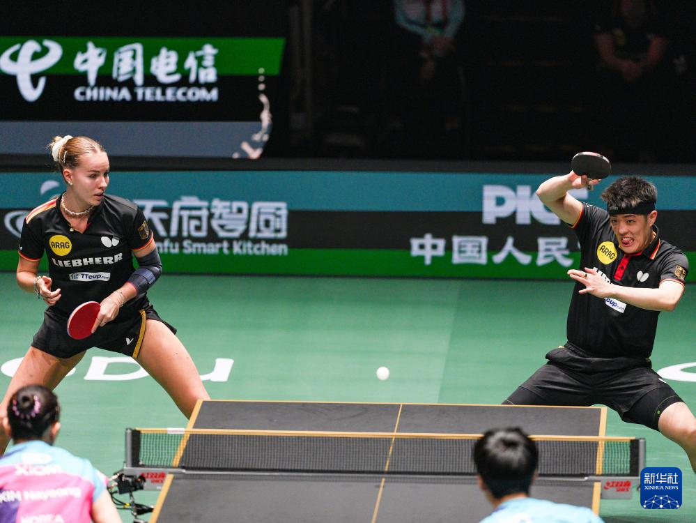 当日,在四川成都举行的2025年国际乒联混合团体世界杯铜牌赛中,德国队总比分8比7战胜韩国队,获得铜牌。