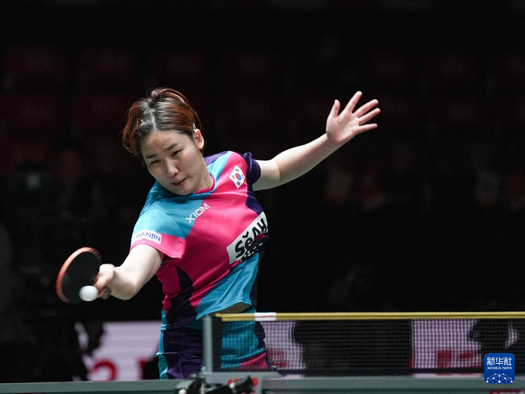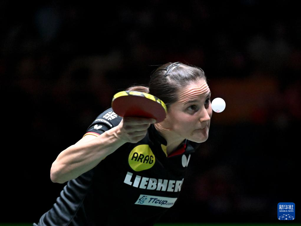 12月7日,德国队选手沙宾·温特在女单比赛中。她1比2不敌韩国队选手李恩惠。