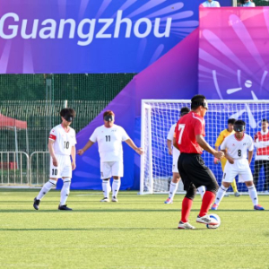 12月8日,在全国第十二届残疾人运动会暨第九届特殊奥林匹克运动会盲人足球项目男子组小组赛中,福建队4:0战胜河南队。新华社记者 陈浩明 摄