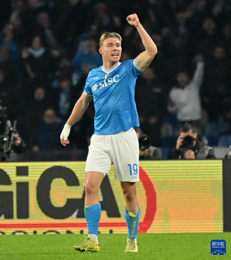 12月7日,那不勒斯队球员霍伊伦庆祝进球。