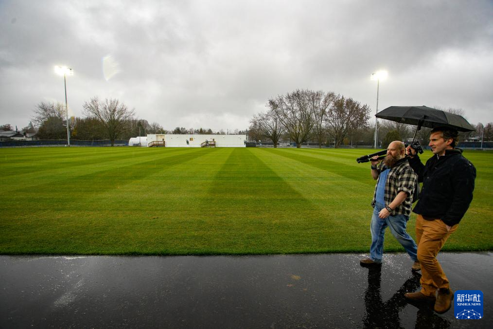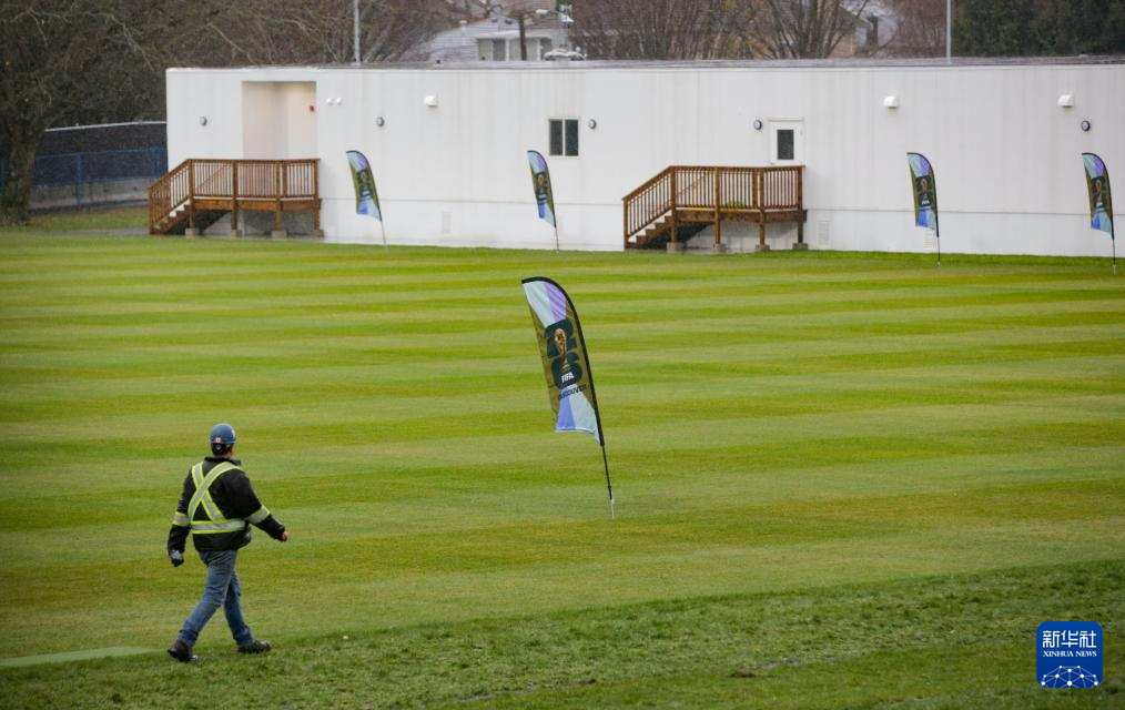 12月8日,一名工作人员走过2026美加墨世界杯温哥华赛区的训练场地。