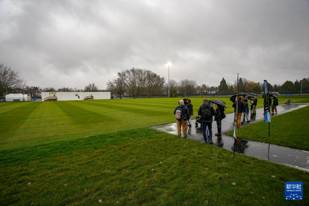12月8日,人们在加拿大温哥华举行的媒体活动中,查看2026美加墨世界杯温哥华赛区训练场地的球场草坪状况。