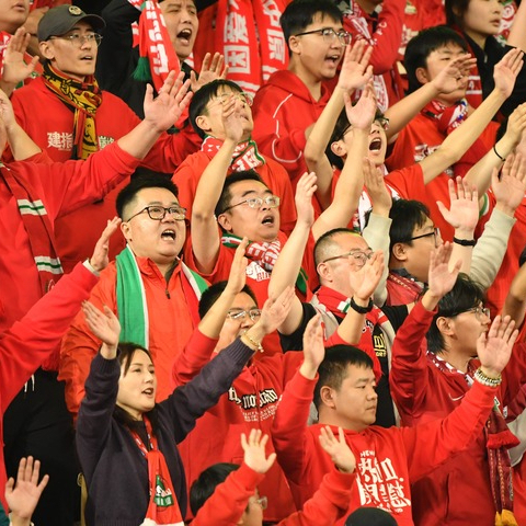 场边欢呼呐喊的球迷们