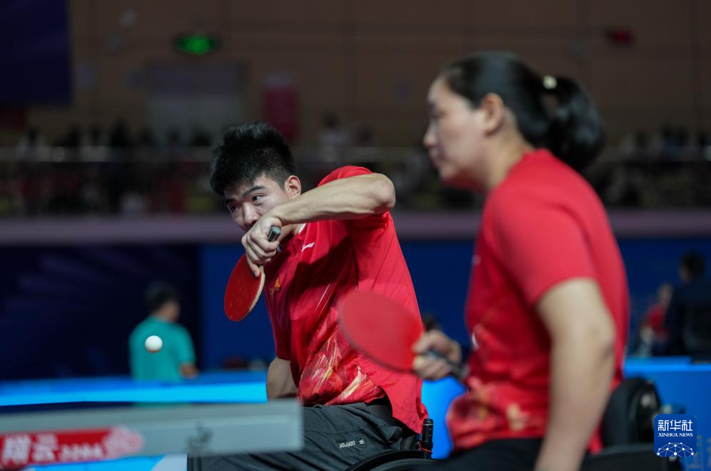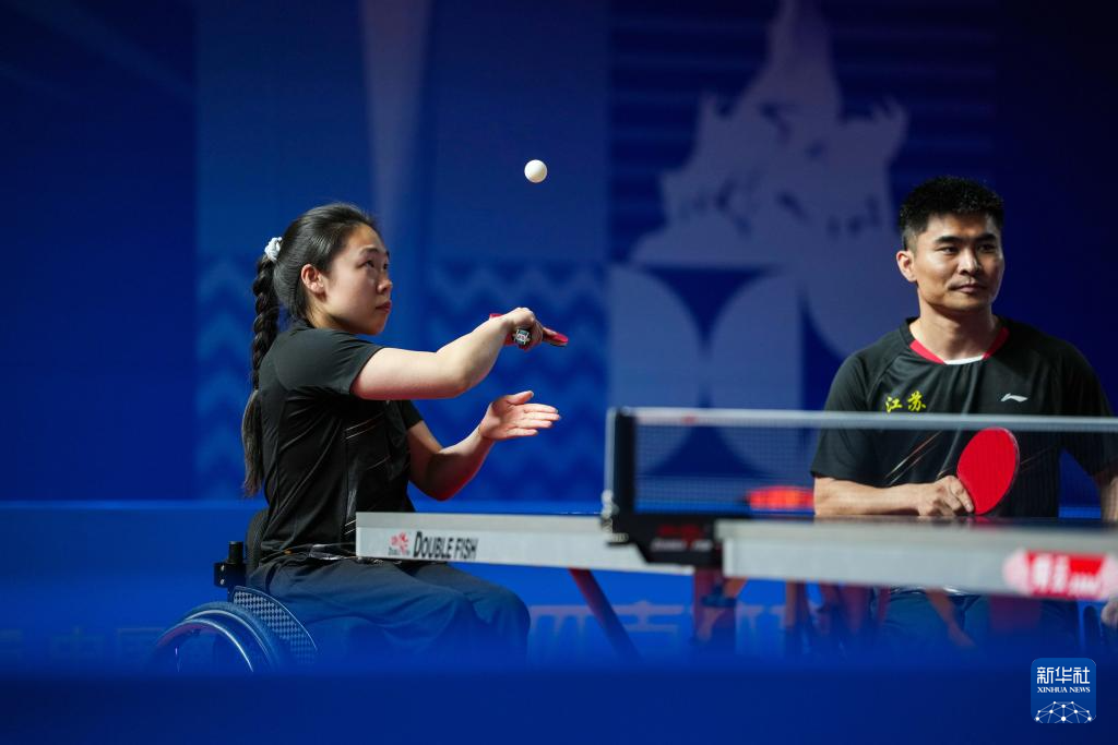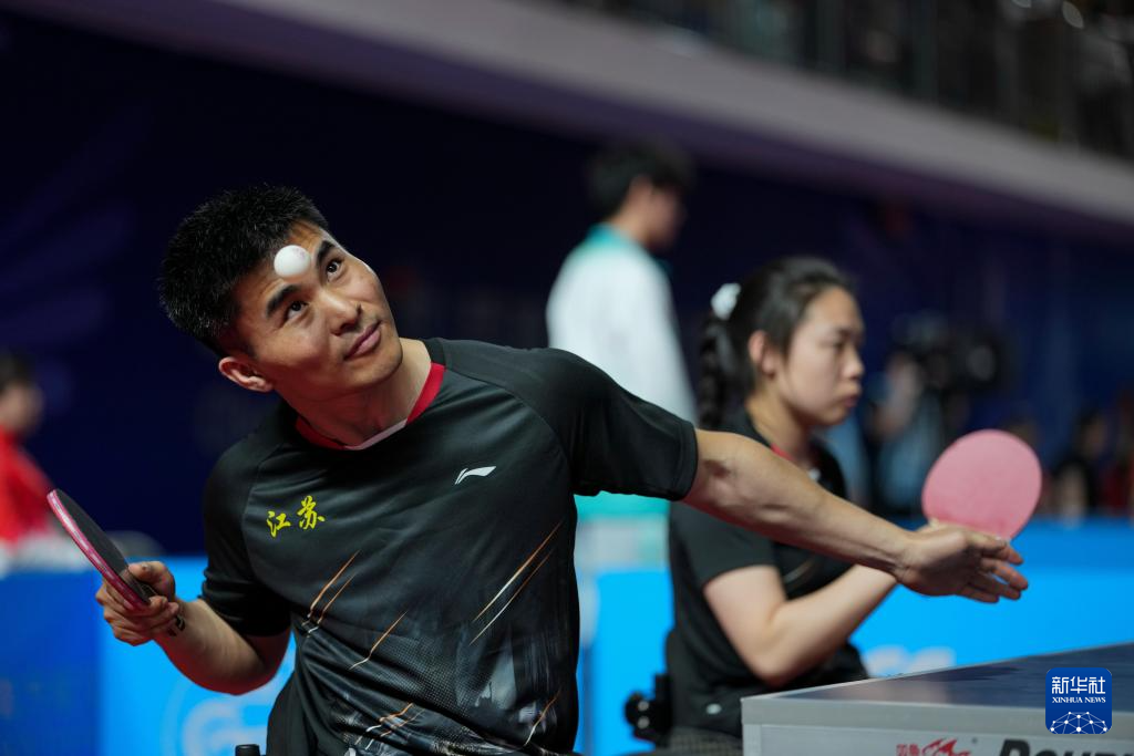 当日,在广州举行的全国第十二届残疾人运动会暨第九届特殊奥林匹克运动会乒乓球XD10混合双打金牌赛中,江苏队组合曹宁宁/谷晓丹3比1战胜江苏队组合彭政扬/张变,获得冠军。
