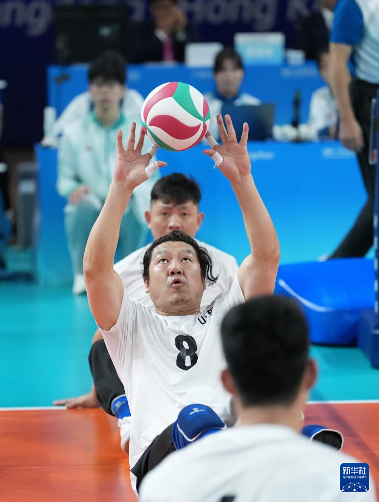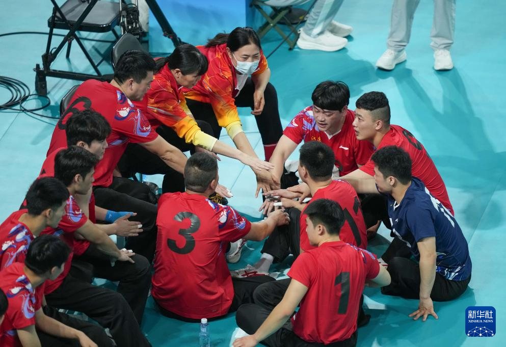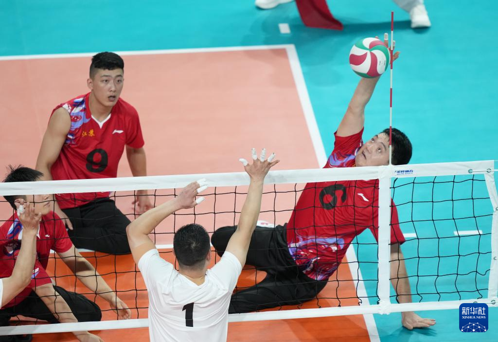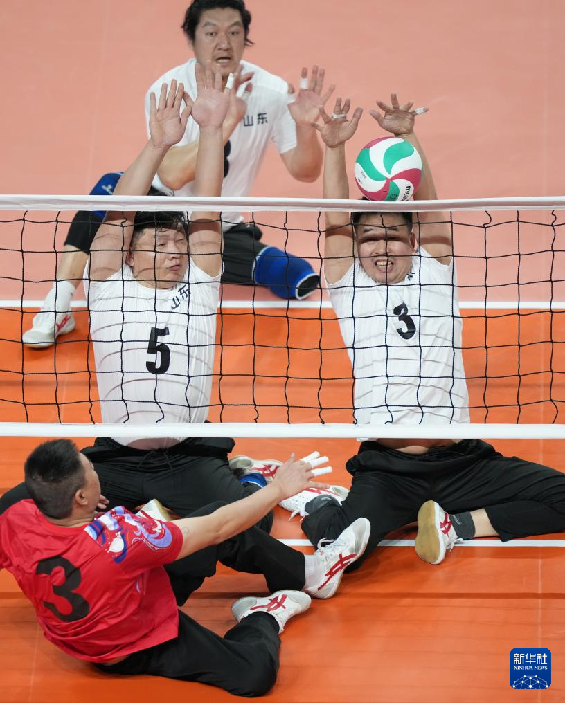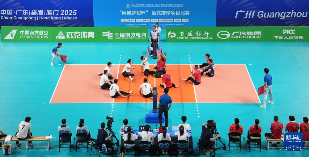 当日,在广州举行的全国第十二届残疾人运动会暨第九届特殊奥林匹克运动会坐式排球项目男子组小组赛中,江苏队3比0战胜山东队。