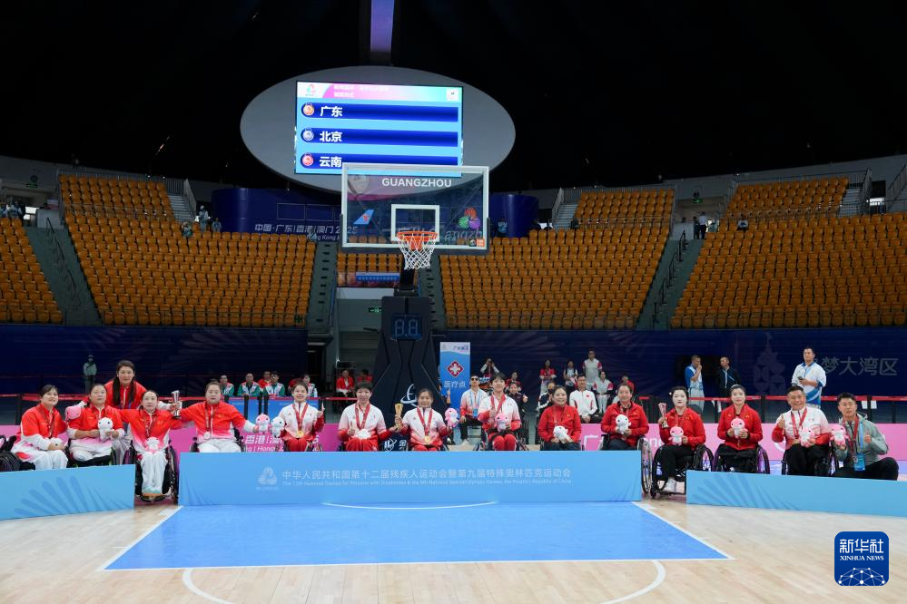 当日,在广州举行的全国第十二届残疾人运动会暨第九届特殊奥林匹克运动会轮椅篮球项目女子三人篮球金牌赛中,广东一团队11比7战胜北京队,夺得金牌。