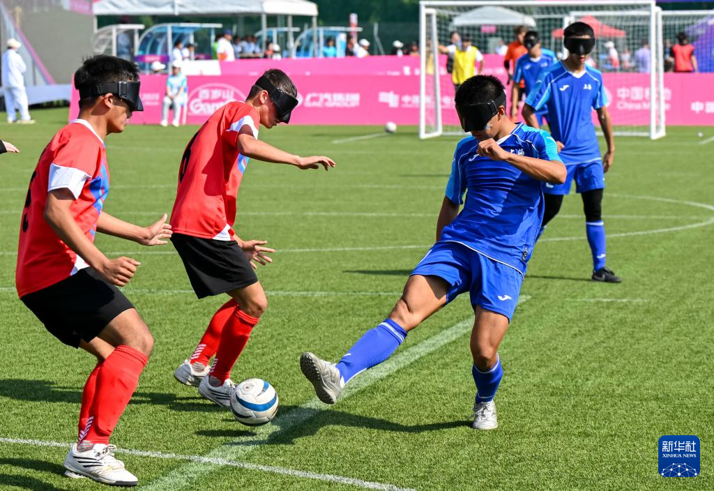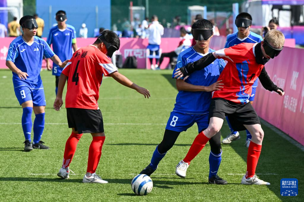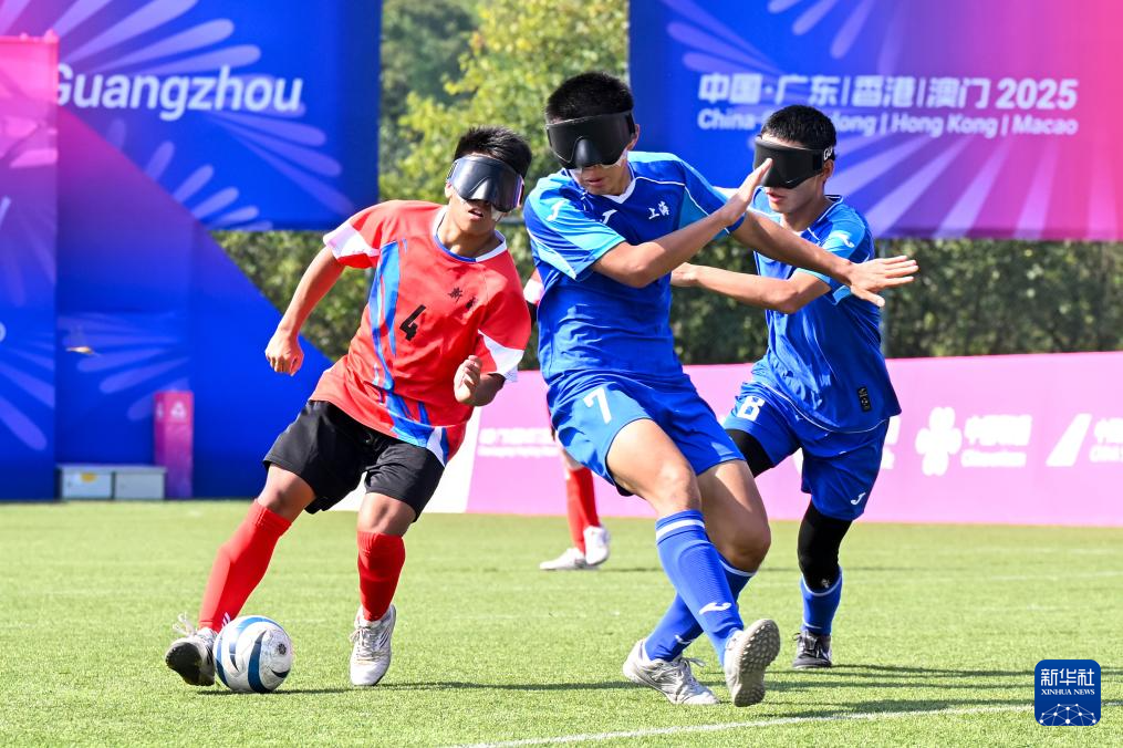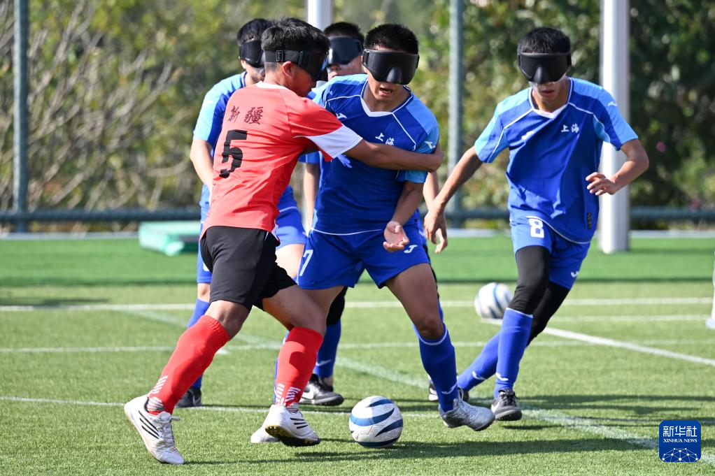 当日,在广州举行的全国第十二届残疾人运动会暨第九届特殊奥林匹克运动会盲人足球项目男子组小组赛中,上海队2比0战胜新疆队。