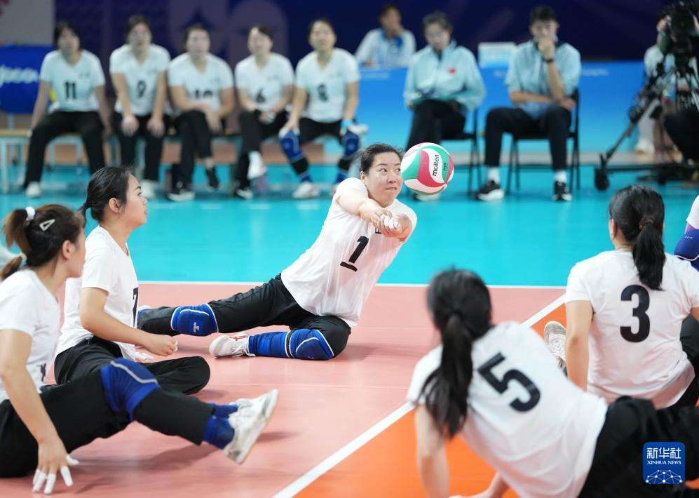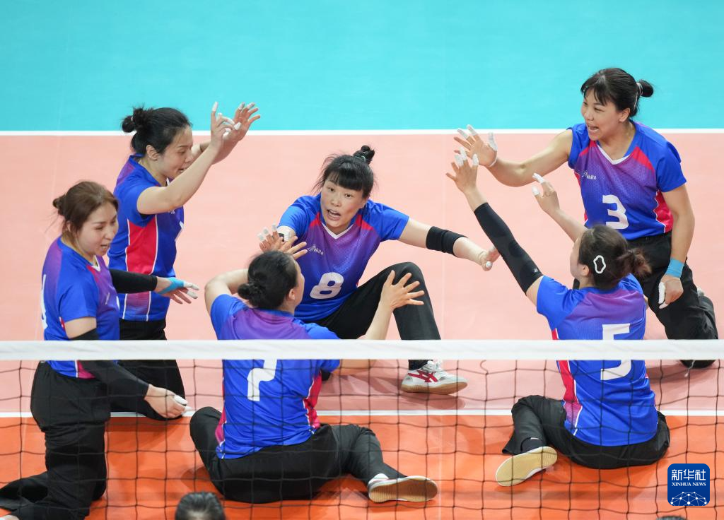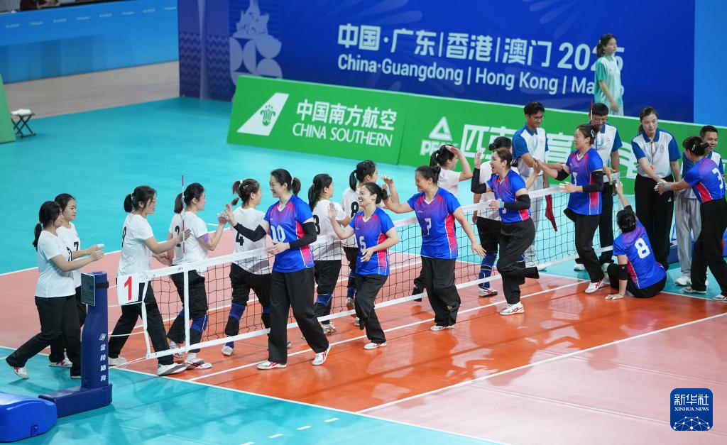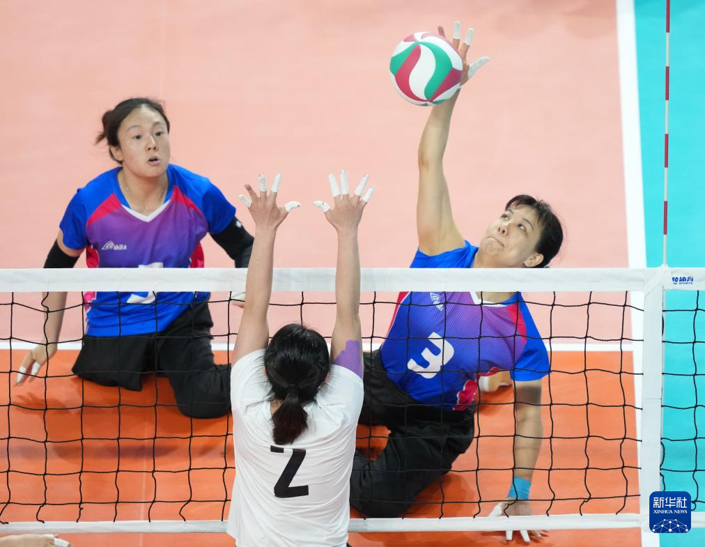 当日,在广州举行的全国第十二届残疾人运动会暨第九届特殊奥林匹克运动会坐式排球项目女子组小组赛中,上海队3比0战胜山东队。