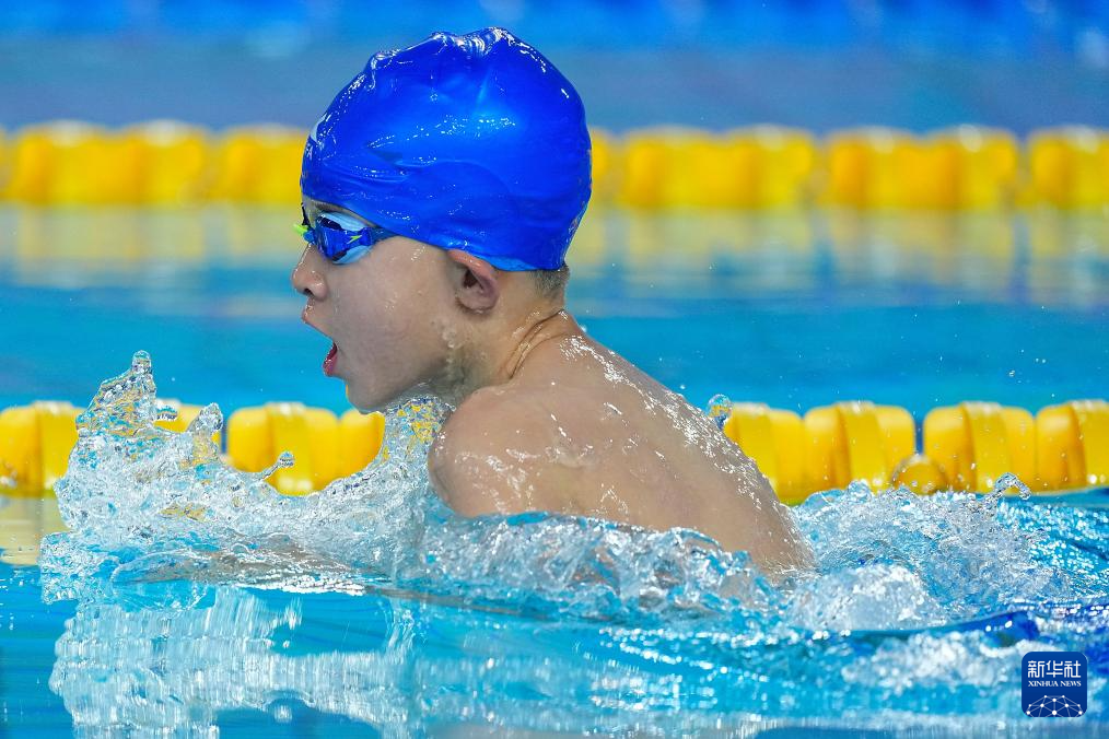12月10日,山西队选手李政浩在男子16-21岁组200米自由泳预赛结束后。