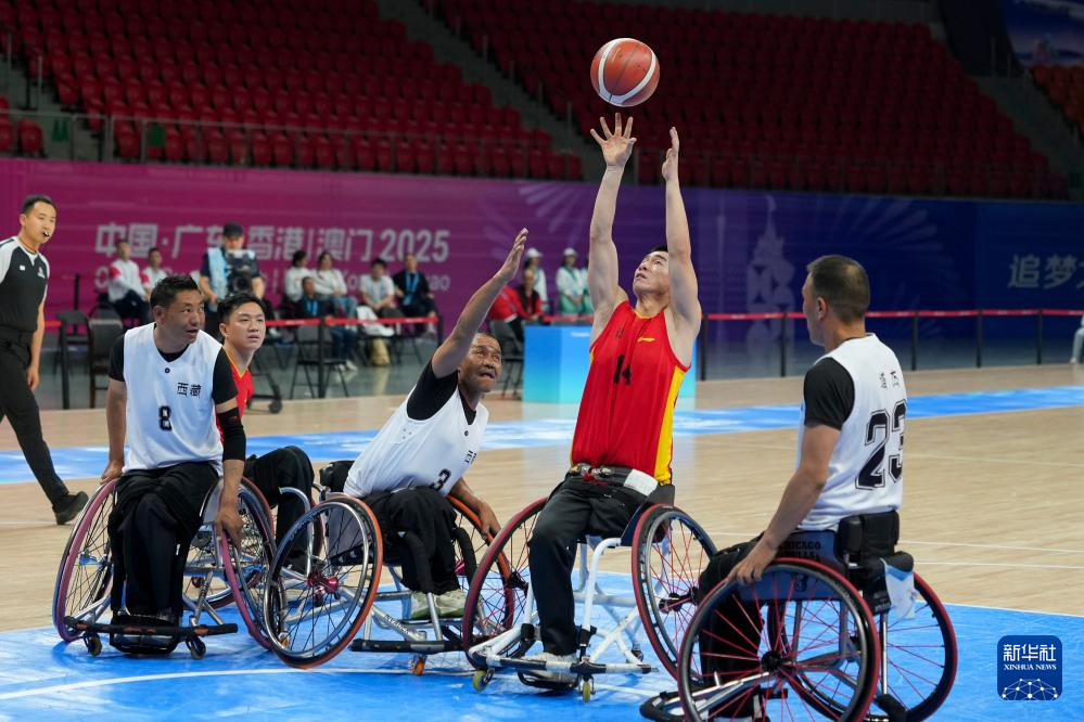 当日,在广州举行的全国第十二届残疾人运动会暨第九届特殊奥林匹克运动会轮椅篮球项目男子组小组赛中,北京队89比38战胜西藏队。
