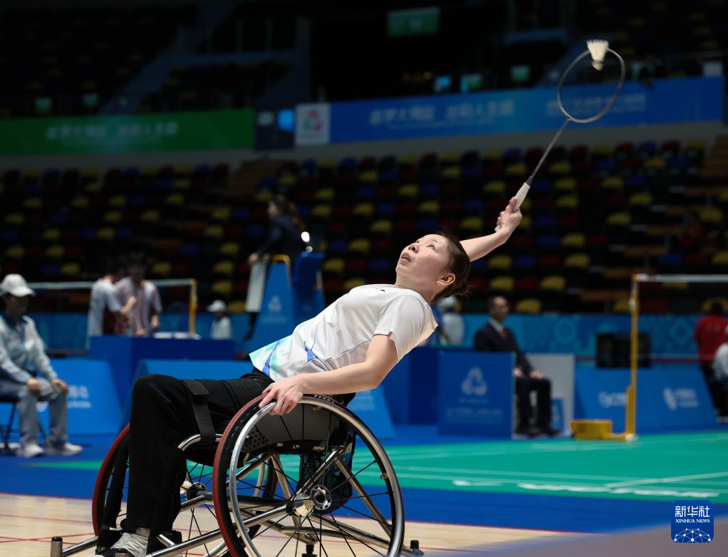 当日,全国第十二届残疾人运动会暨第九届特殊奥林匹克运动会羽毛球羽毛球WH1女子单打小组赛在澳门举行。