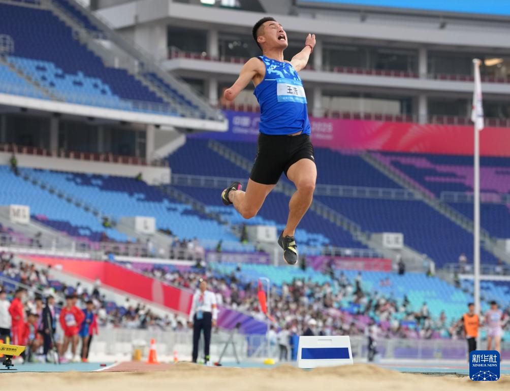 当日,第十二届全国残疾人运动会暨第九届特殊奥林匹克运动会田径男子跳远T47级决赛在广州举行。