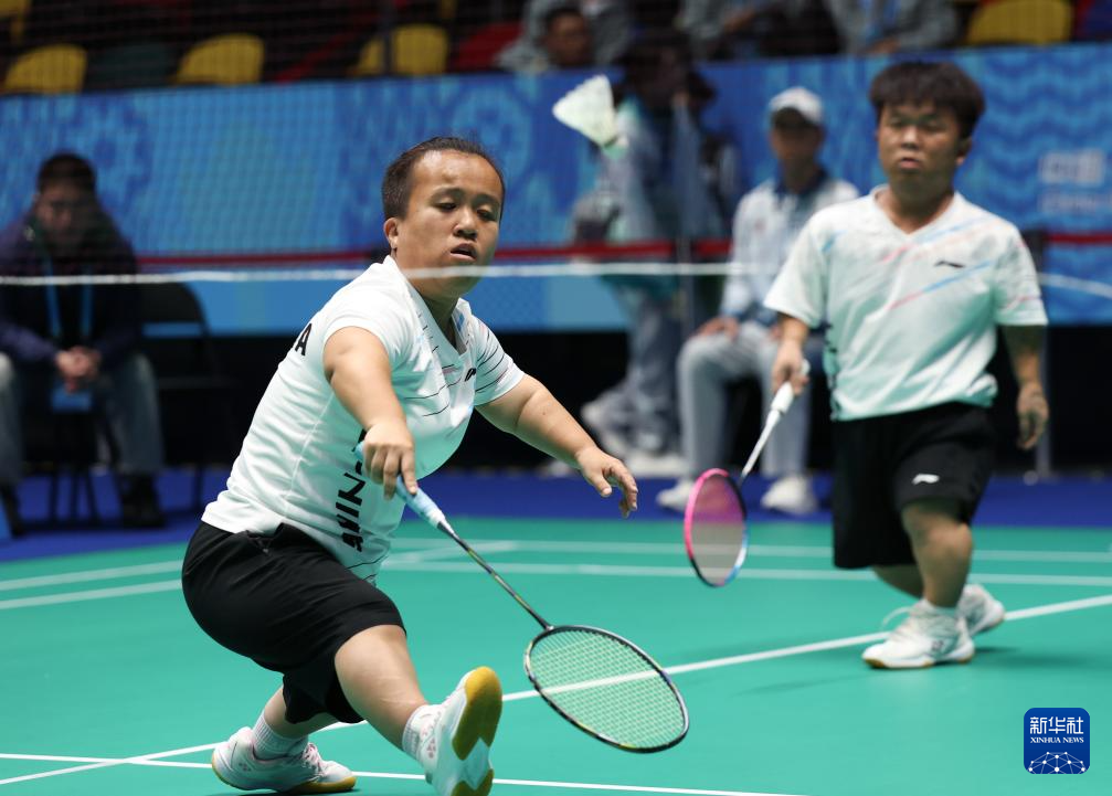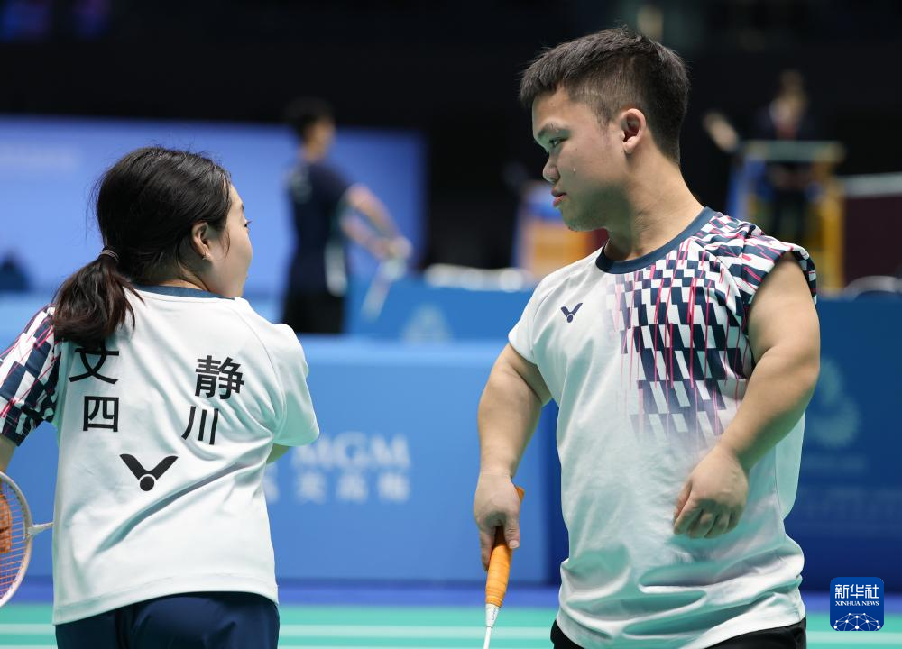 当日,全国第十二届残疾人运动会暨第九届特殊奥林匹克运动会羽毛球SH6混合双打小组赛在澳门举行。