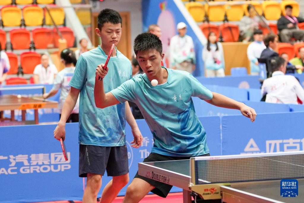 12月9日,重庆队组合陈宇宁(右)/罗旭在与广东队组合练皓源/张富杰的A组比赛中。最终,陈宇宁/罗旭获得A组冠军,练皓源/张富杰的获得A组季军。