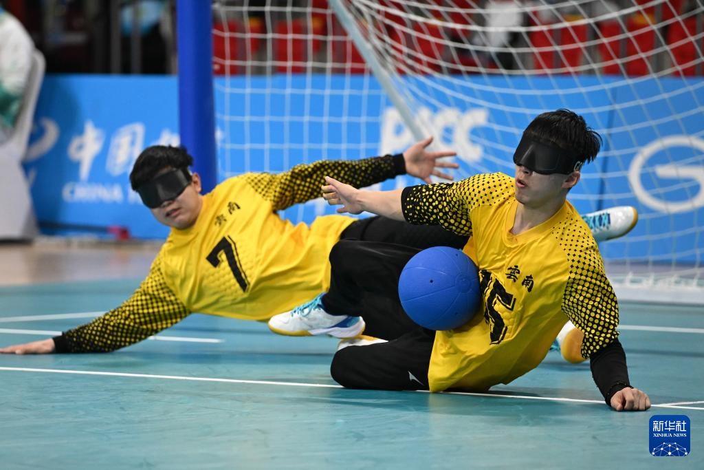 当日,在广州举行的全国第十二届残疾人运动会暨第九届特殊奥林匹克运动会盲人门球男子组小组赛中,云南队14比9战胜北京队。