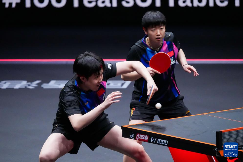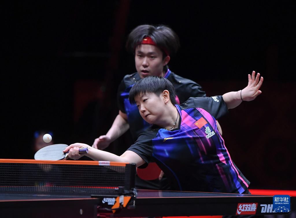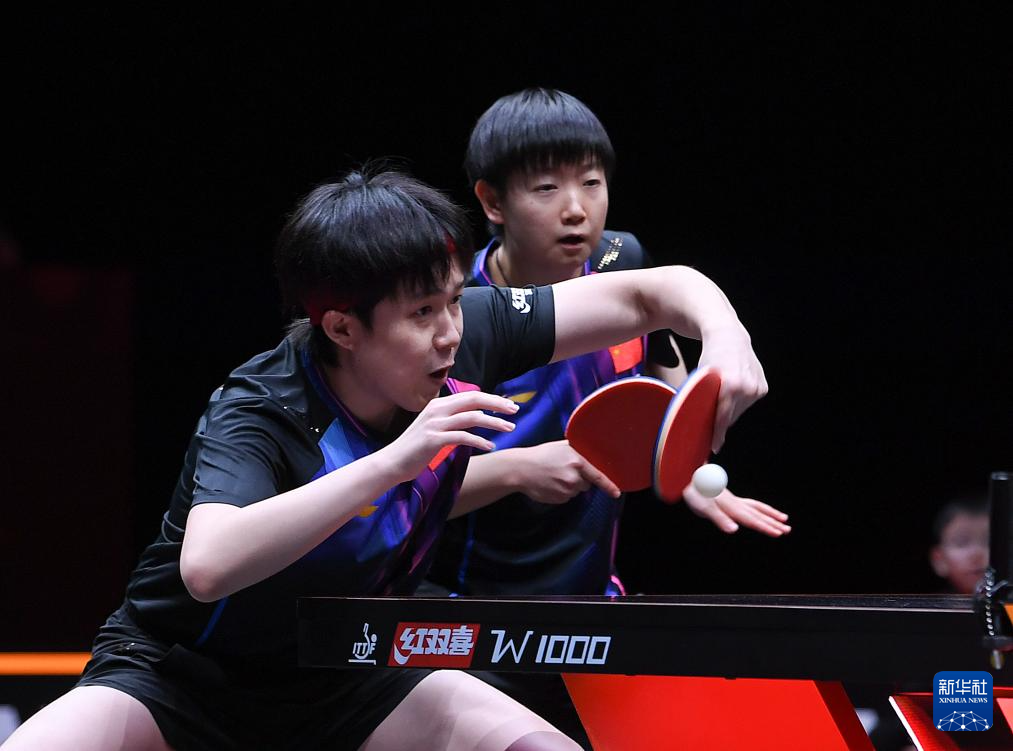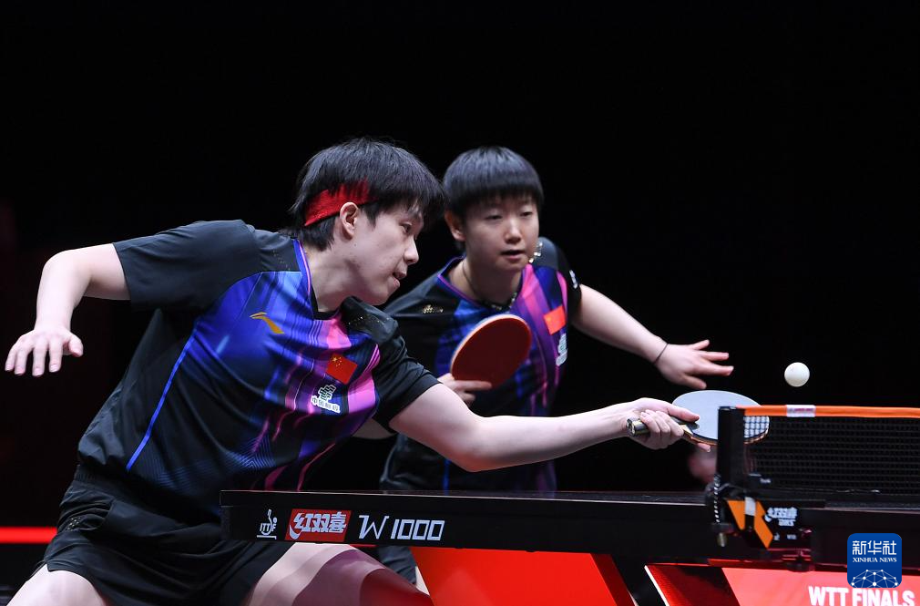 12月10日,王楚钦/孙颖莎(右)在比赛中。
