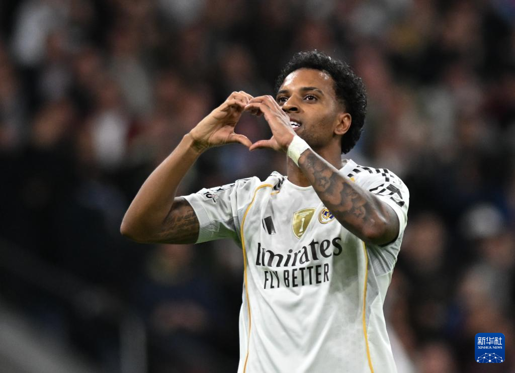 12月10日,皇家马德里队球员罗德里戈庆祝进球。