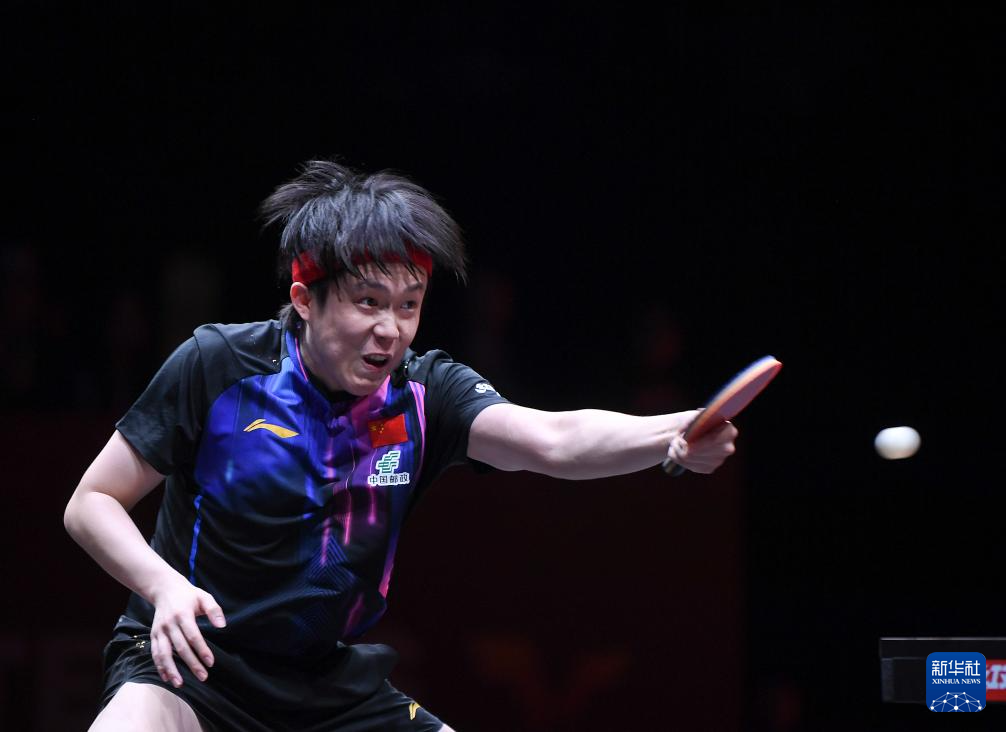 12月10日,王楚钦在比赛中回球。