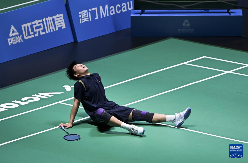 12月10日,澳门一团队选手方伟晋在男子16-21岁组单打E组比赛中庆祝。
