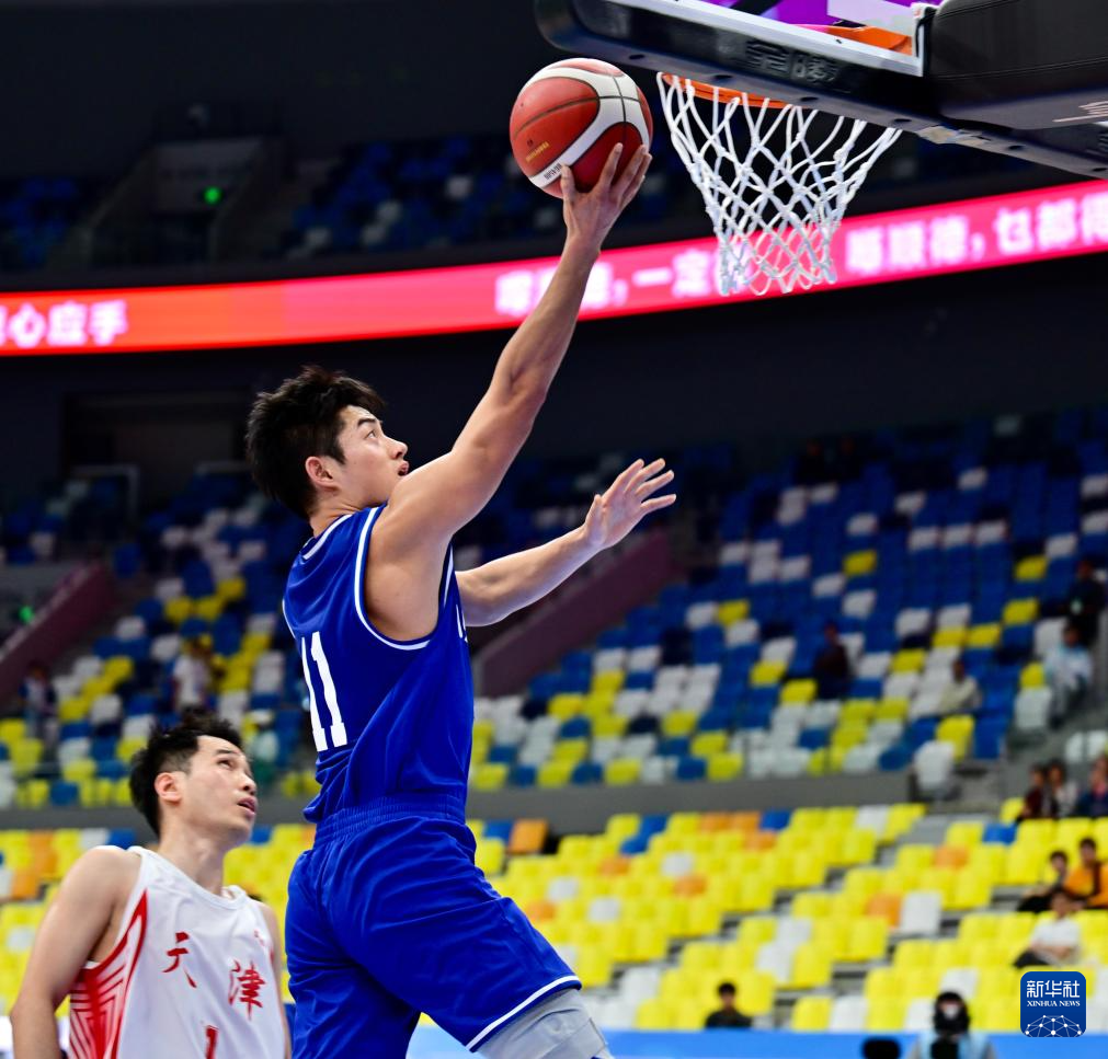 12月12日,四川队球员张杭(右)在比赛中上篮。