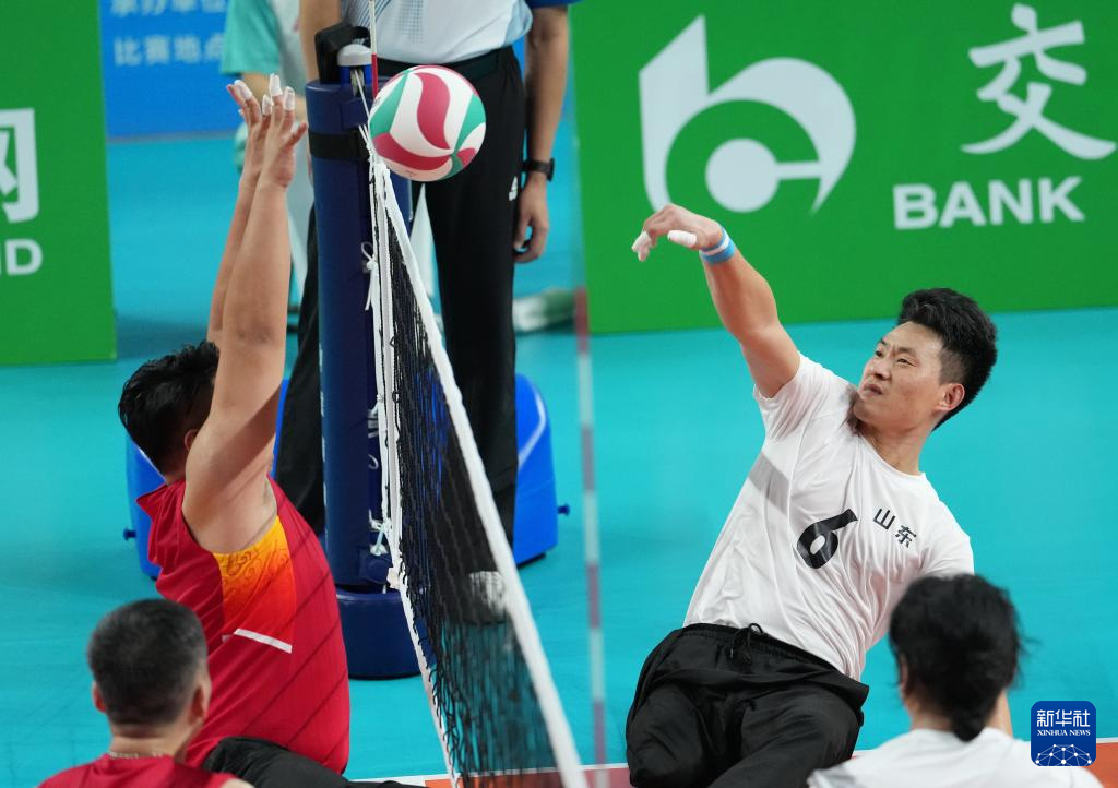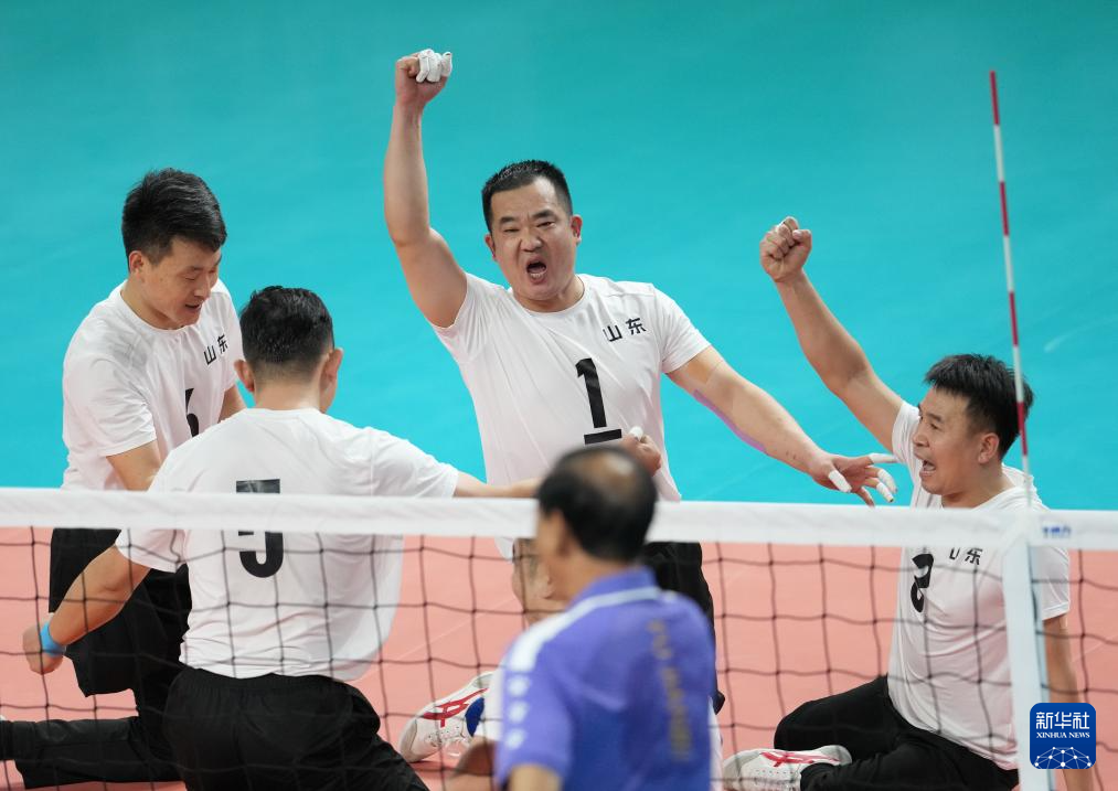 当日,在广州举行的全国第十二届残疾人运动会暨第九届特殊奥林匹克运动会坐式排球项目男子组小组赛中,山东队3比1战胜福建队。