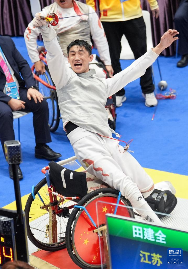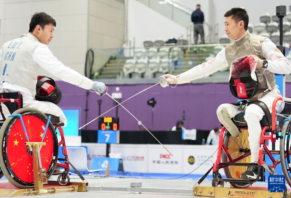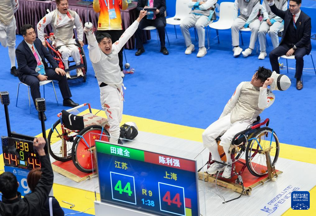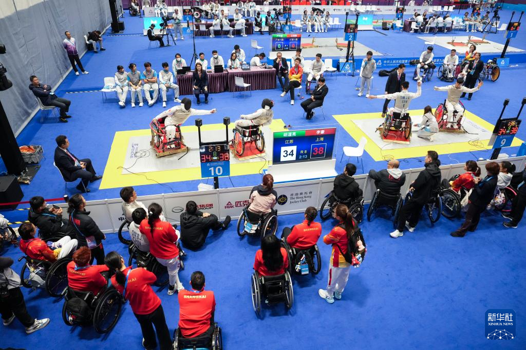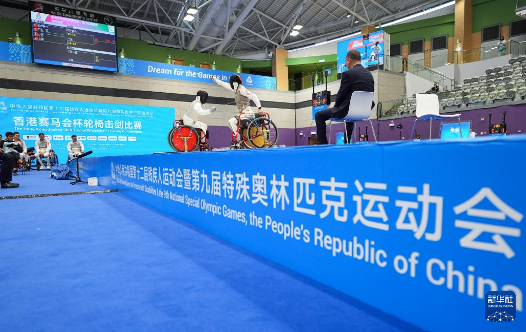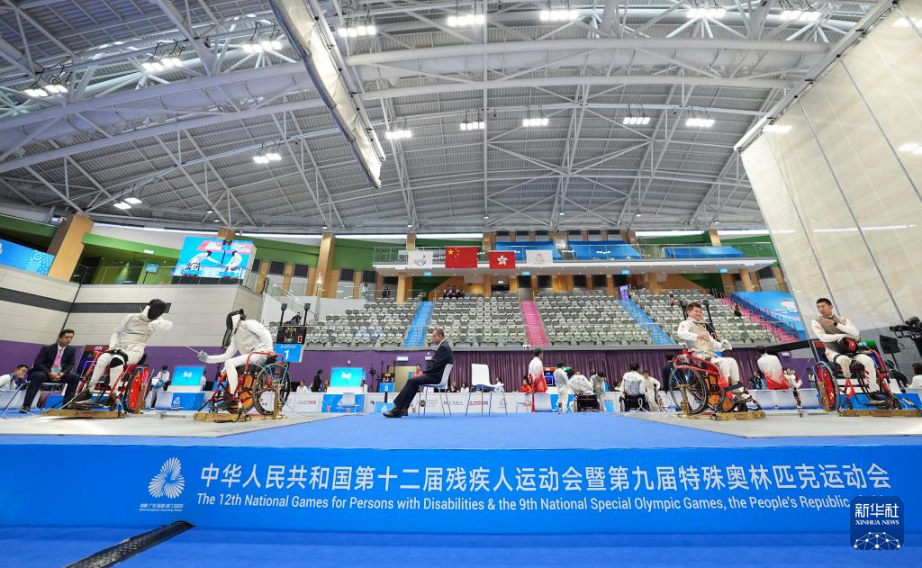 当日,全国第十二届残疾人运动会暨第九届特殊奥林匹克运动会轮椅击剑项目男子花剑团体比赛在香港举行。
