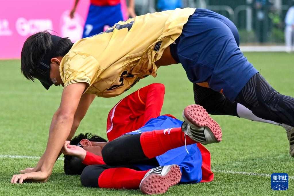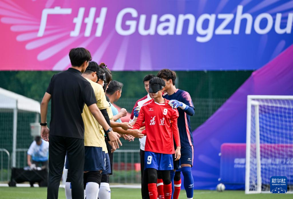 当日,在广州举行的全国第十二届残疾人运动会暨第九届特殊奥林匹克运动会盲人足球项目男子组小组赛中,广东一团队2比1战胜福建队。
