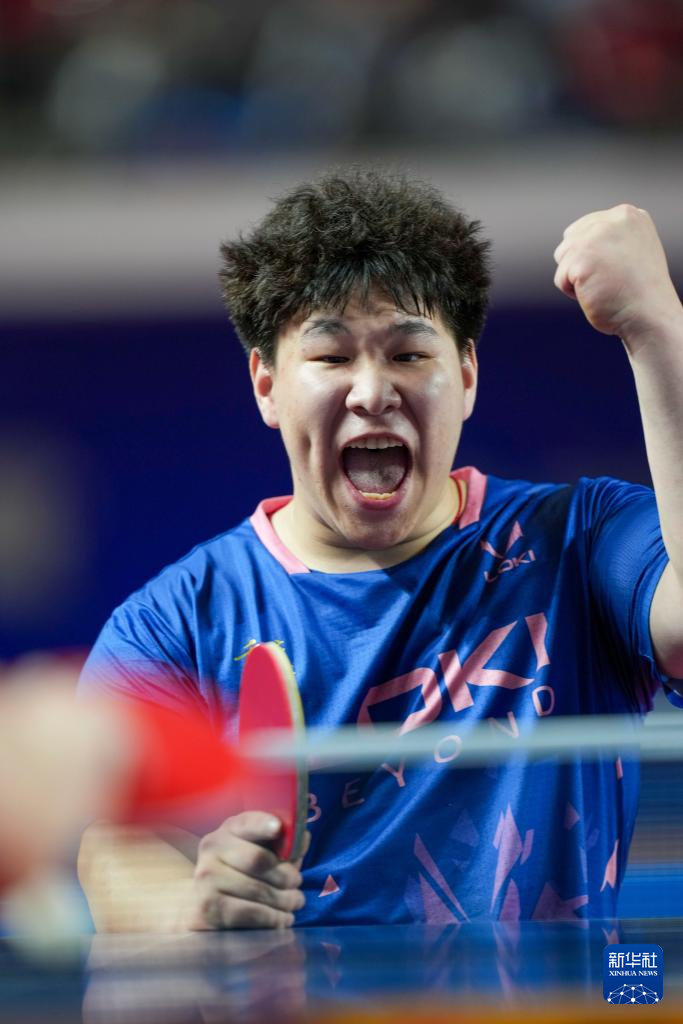 12月12日,重庆队选手侯琴在比赛中庆祝得分。