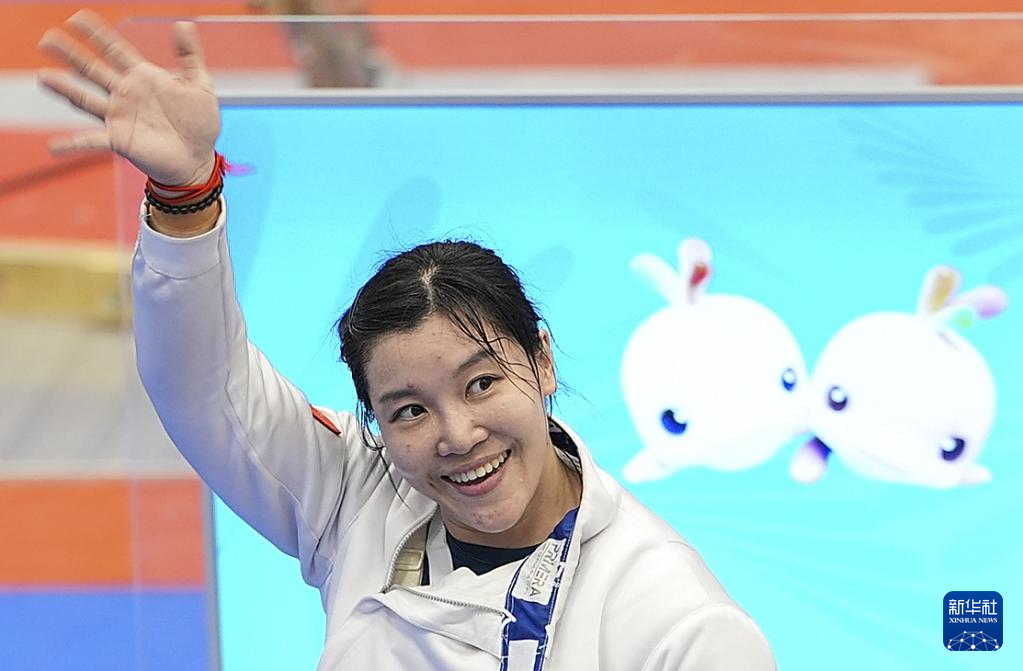 12月11日,上海队选手辜海燕在金牌赛前向观众致意。最终,她获得冠军。