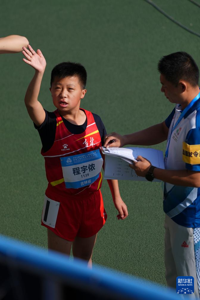 12月12日,吉林队选手程宇侬(左)在男子12-15岁组400米预赛第4组比赛前向看台挥手致意。