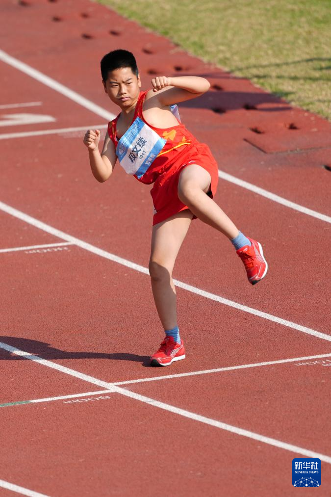 12月12日,湖南接力三队选手陈旺鑫在男子8-15岁组4x400米接力预赛中。