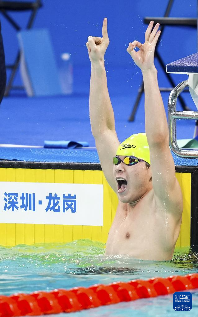 12月11日,广东一团队选手黄学亮在男子50米自由泳S13级决赛后庆祝。他获得冠军。