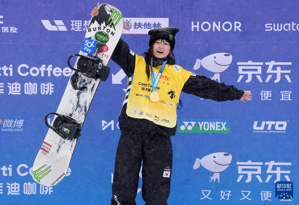 当日,国际雪联单板滑雪U型场地技巧世界杯女子组决赛在河北省张家口市崇礼区举行。