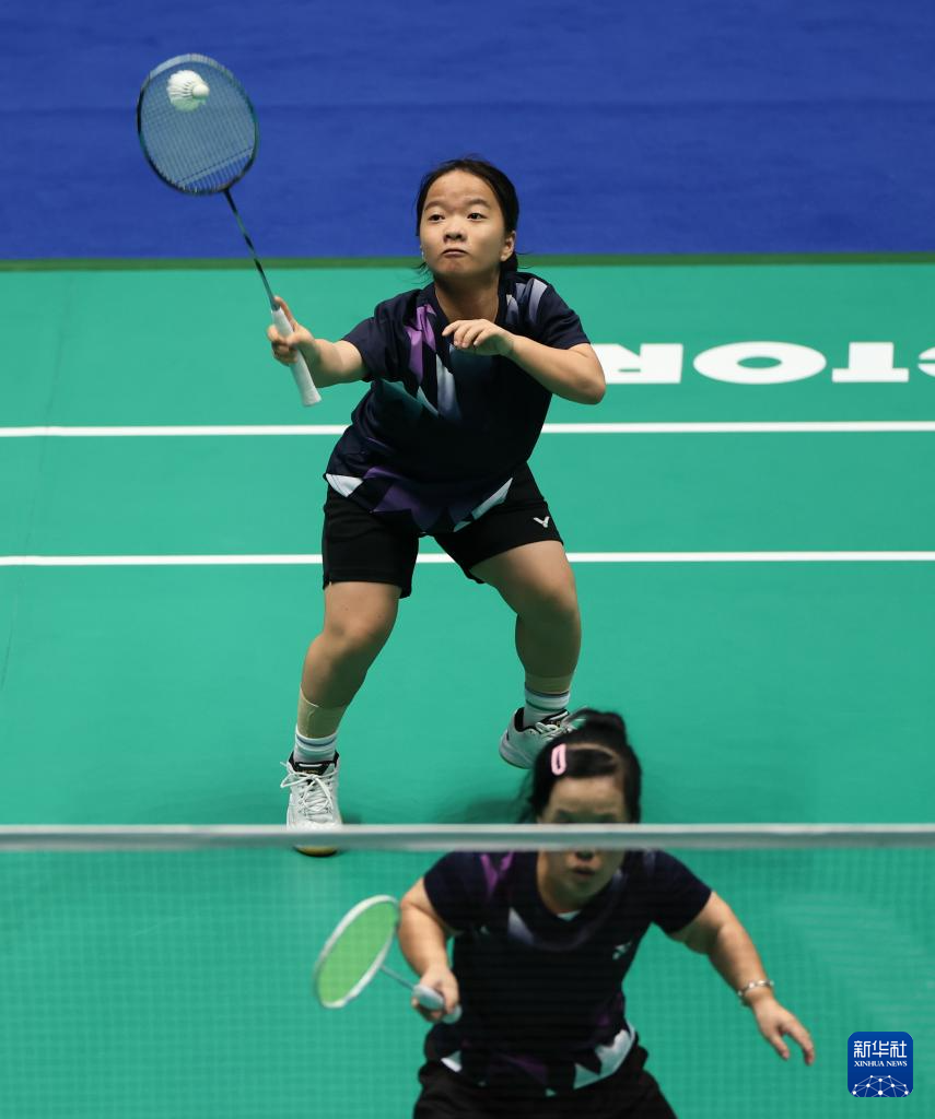 12月12日,福建队组合林馨怡(上)/李细凤在比赛中。在SH6女子双打1组第6场比赛中,四川队组合文静/杨倩灵子2比1战胜福建队组合林馨怡/李细凤。