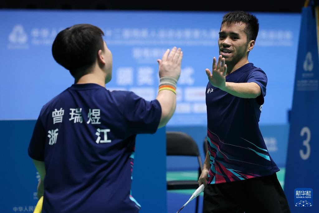 12月12日,浙江队组合曾瑞煜(左)/林乃利在比赛中。在SH6男子双打1组第7场比赛中,浙江队组合曾瑞煜/林乃利2比1战胜香港一团组合王镇炎/朱文佳。