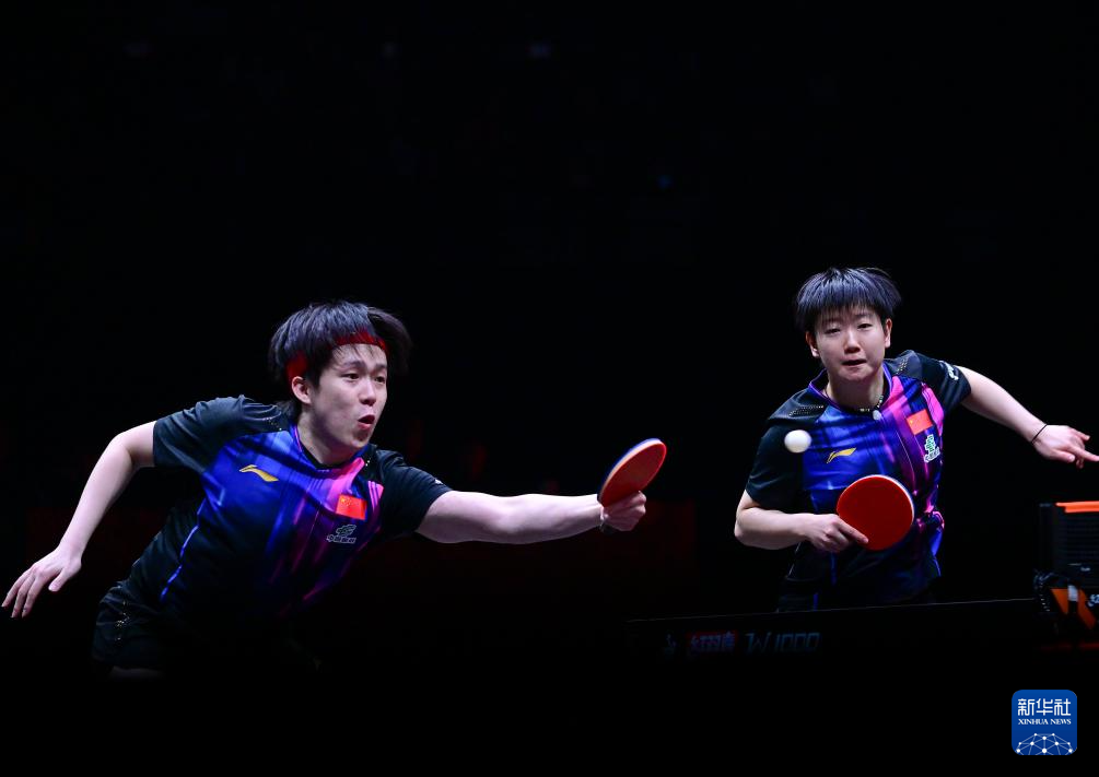 12月12日,中国组合王楚钦/孙颖莎(右)在比赛中。