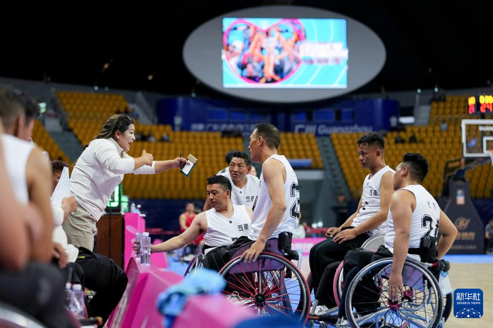 当日,在广州举行的全国第十二届残疾人运动会暨第九届特殊奥林匹克运动会轮椅篮球项目男子组小组赛中,广西队59比29战胜西藏队。