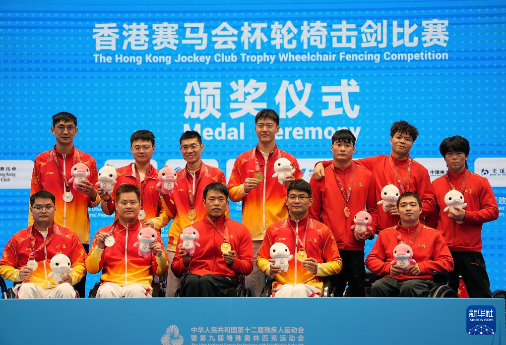 当日,全国第十二届残疾人运动会暨第九届特殊奥林匹克运动会轮椅击剑项目男子花剑团体比赛在香港举行。