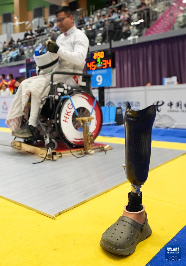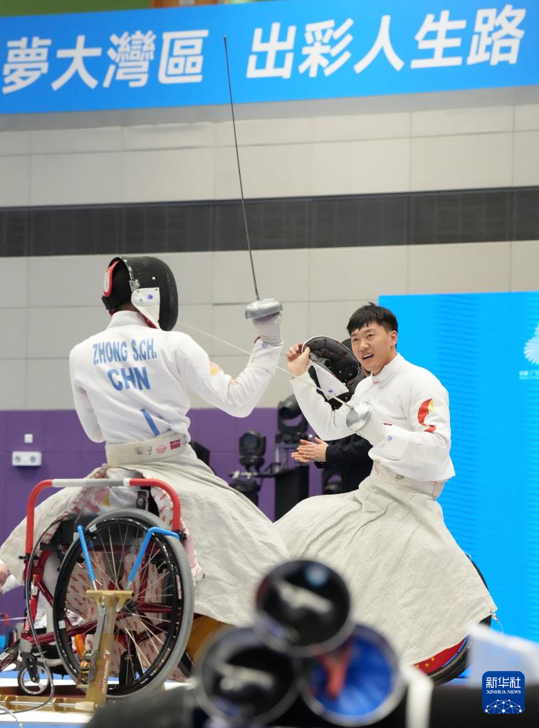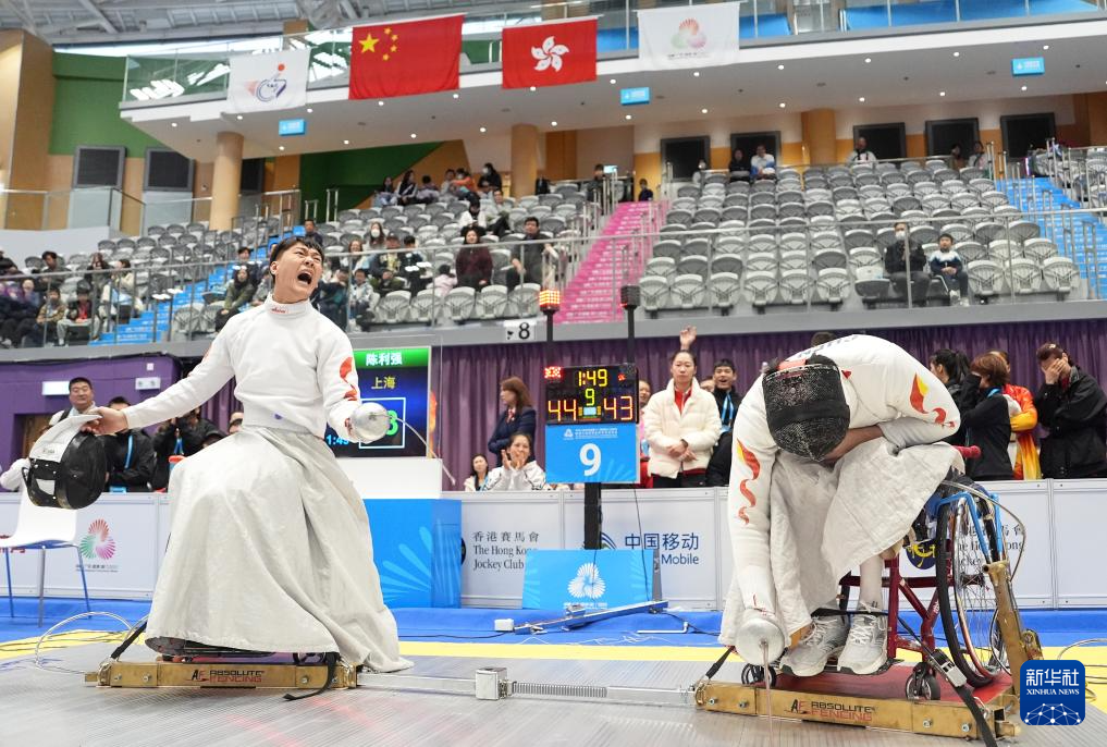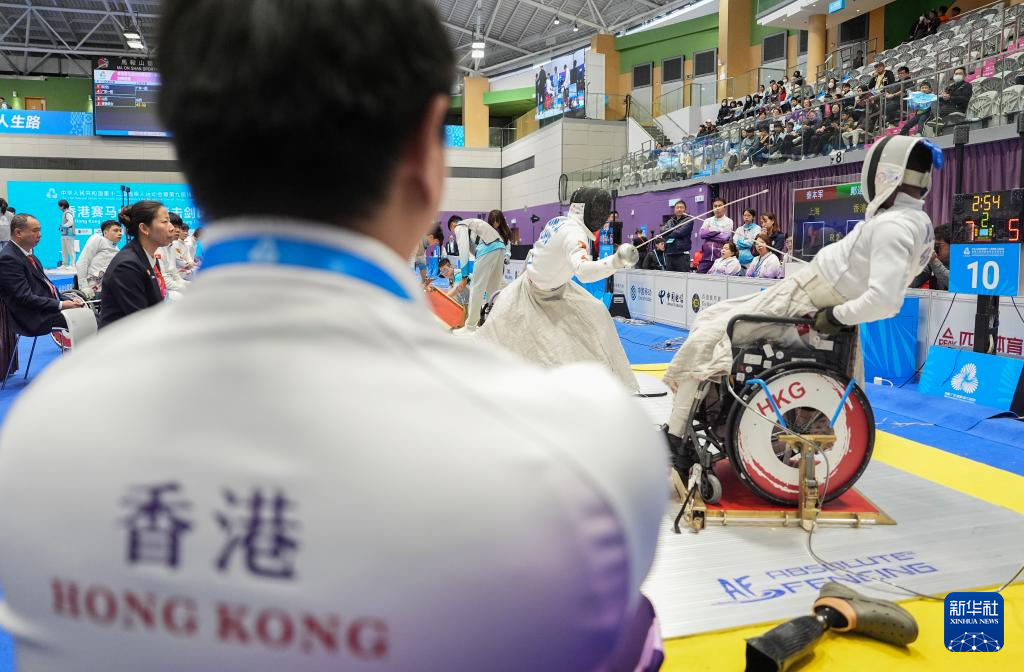 当日,全国第十二届残疾人运动会暨第九届特殊奥林匹克运动会轮椅击剑项目男子重剑团体比赛在香港举行。