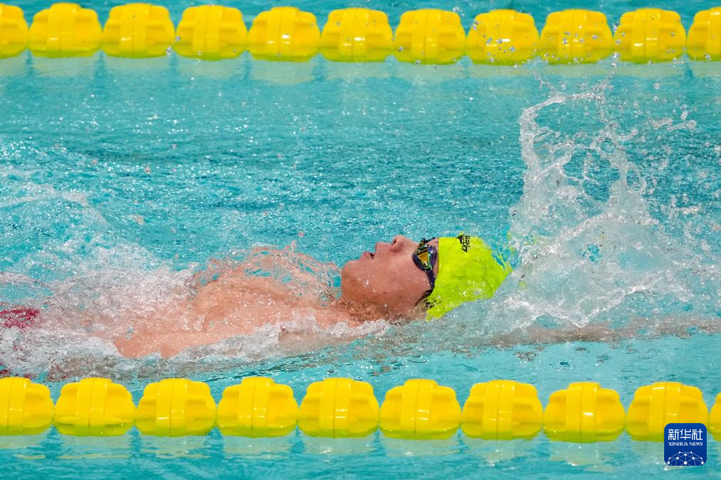 12月14日,在男子200米个人混合泳SM13决赛中,选手们跃入泳道。