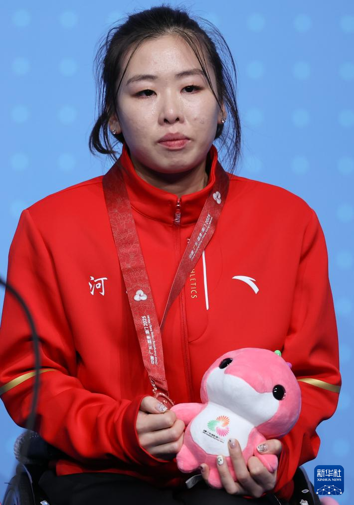 12月13日,季军河北队选手尹梦璐在WH1女子单打颁奖仪式上。