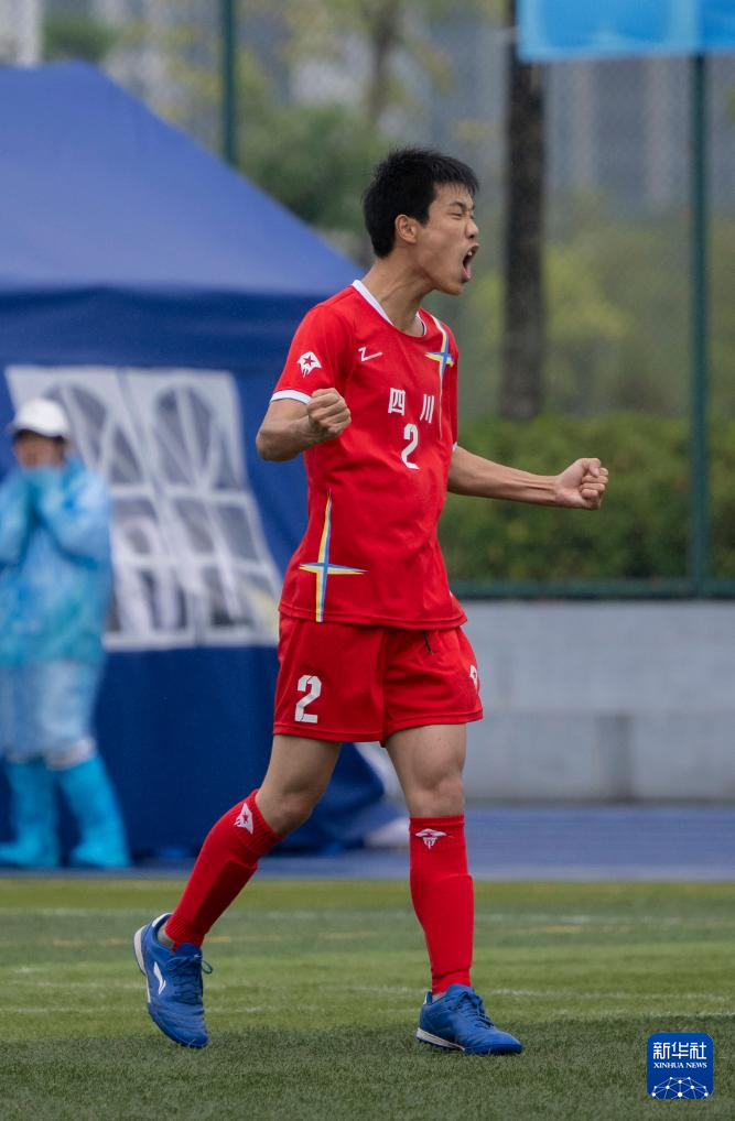 12月13日,四川队球员蒲勇在队制比赛决赛第二轮比赛中进球后庆祝。在特奥足球项目队制比赛决赛第二轮比赛中,四川队6比2战胜上海队。